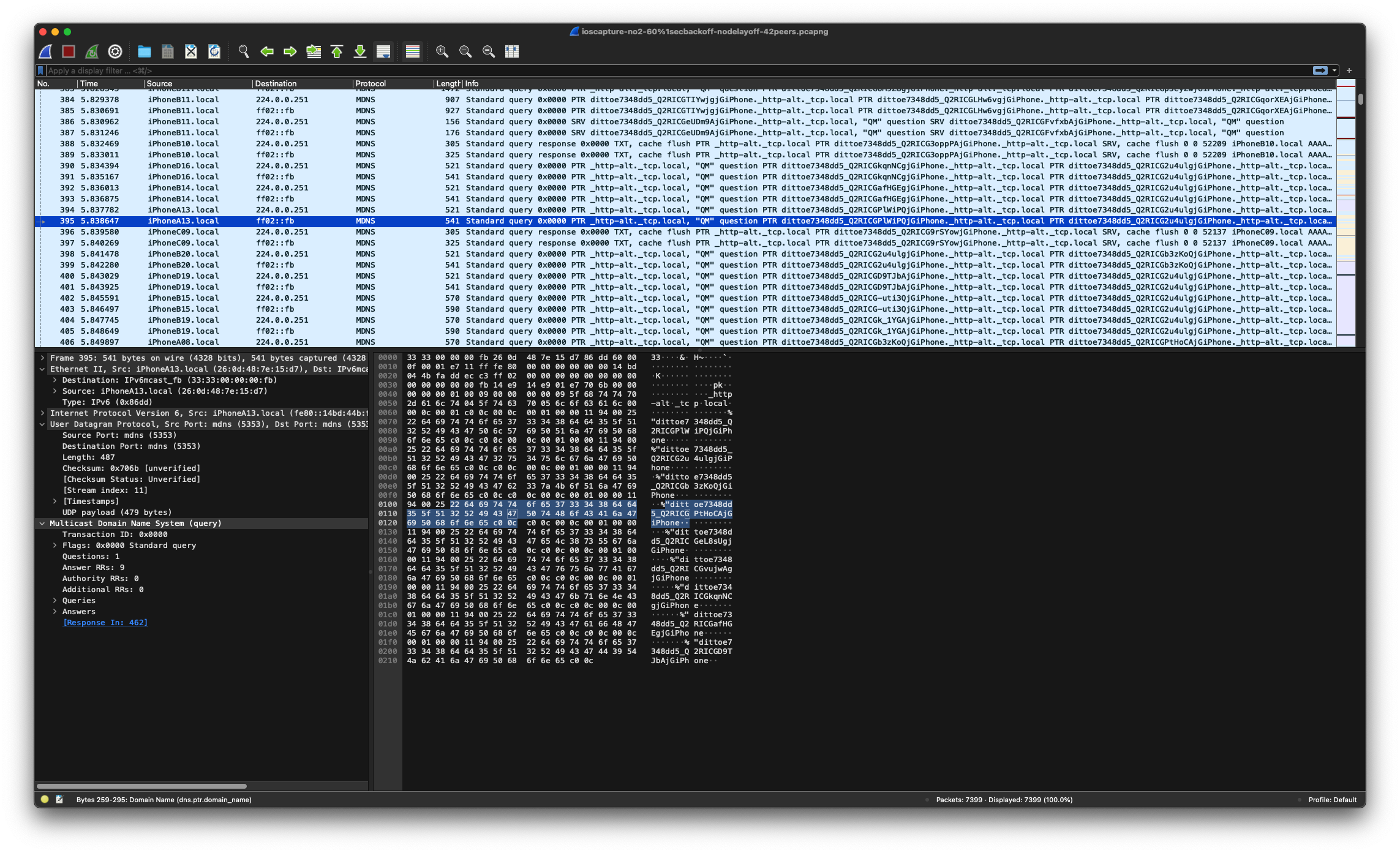 You can use the network traffic capture and analysis tool to directly observer the Ditto announce messages on a variety of interfaces. This powerful tool is available on Windows, Mac, and Linux. Generally, it is sufficient to capture filterudp port 5353